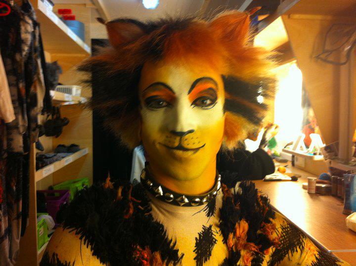 D.Q.: A SWING is basically and understudy, but I guess, as it usually understudies the ensemble members, who nearly do all the same, the name changed to swing. Although on CATS, everyone is doing something different. Different CATS interact with each other, depending on age, range, sex etc. There is a lot of free stuff in CATS, but when it comes to the dances, you really need to know, which line you re in and which cat to follow or watch for- so you don’t kick them, or they don’t hit you. When i’m not on stage, i’m backstage singing in the booth, or watching the show to refresh my memory of a certain cat, who i might not have played for a while.